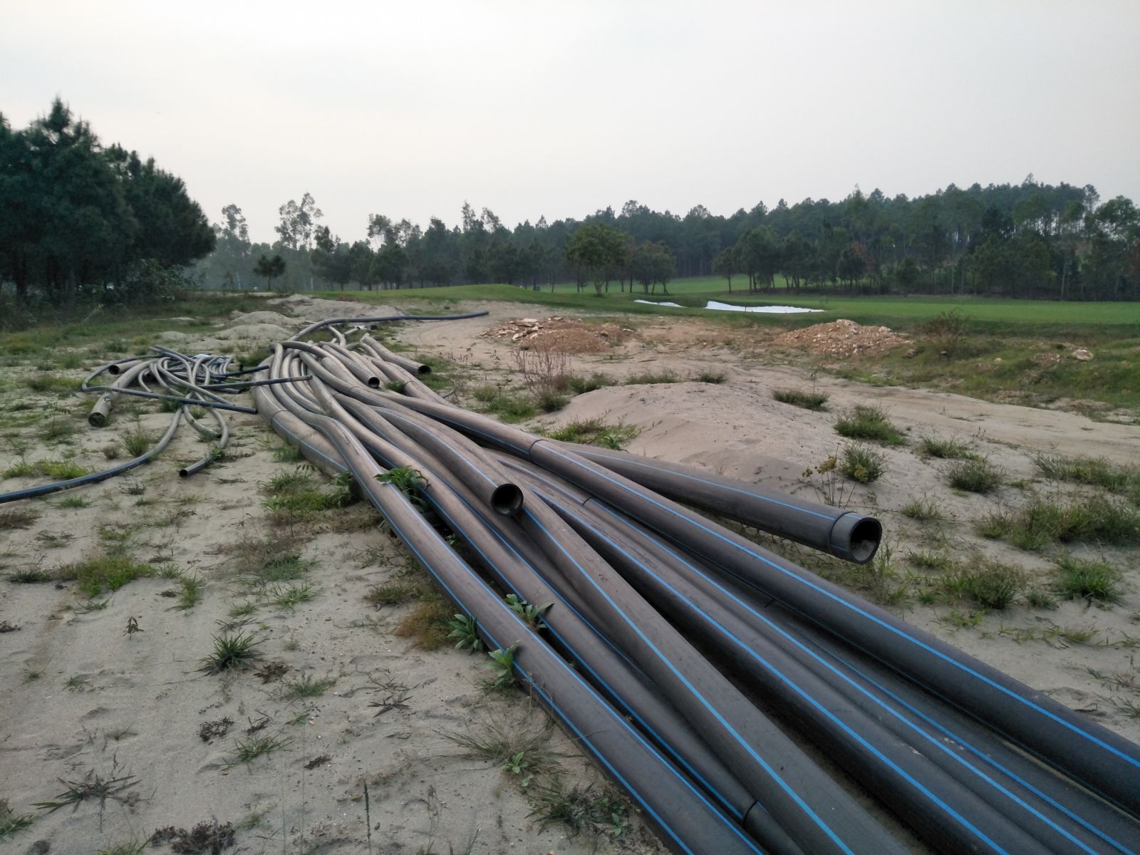 Các ống nước, vật liệu nằm ngổn ngang trong khu vực dự án sân golf |