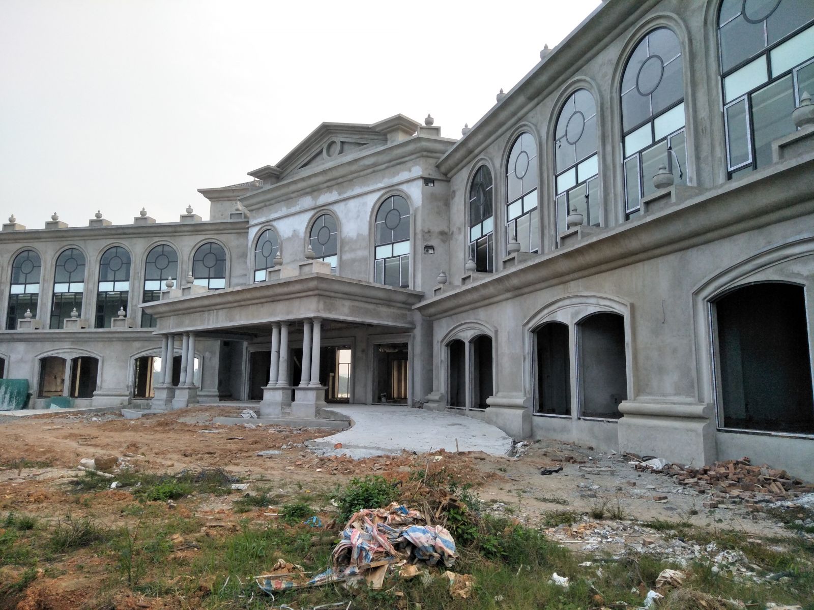 Tại khu vực sân nhà điều hành của Chủ đầu tư dự án, hàng loạt ô tô của khách tới chơi golf đỗ la liệt. Ngay cạnh đó là một tổ hợp công trình bề thế đang thi công dang dở. Theo thông tin thể hiện treo trên tấm biển báo gần đó cho thấy đây là công trình Khách sạn Đại Lải Golf, chủ đầu tư là Công ty CP sân Golf Đại Lải.