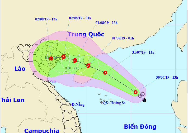Dự báo thời tiết - Đêm 30 và ngày 31/07/2019