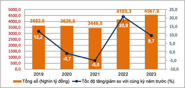 Tính chung 9 tháng, tổng mức bán lẻ hàng hóa và doanh thu dịch vụ tiêu dùng theo giá hiện hành ước đạt gần 4,57 triệu tỷ đồng, tăng 9,7% so với cùng kỳ năm trước (cùng kỳ năm 2022 tăng 20,9%), nếu loại trừ yếu tố giá tăng 7,3% (cùng kỳ năm 2022 tăng 16,6%).