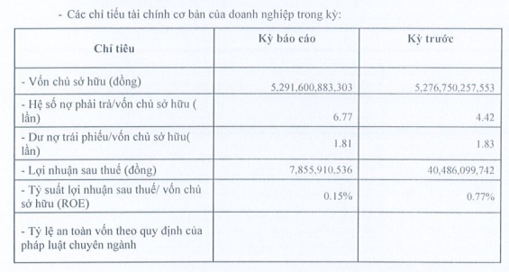 Thông tin tài chính mới nhất được doanh nghiệp công bố là Báo cáo tài chính Bán niên (Kỳ báo cáo từ 01/01/2024 đến 30/06/2024) năm 2024 với lợi nhuận sau thuế vỏn vẹn 7,8 tỷ đồng, giảm 80% so với cùng kỳ.