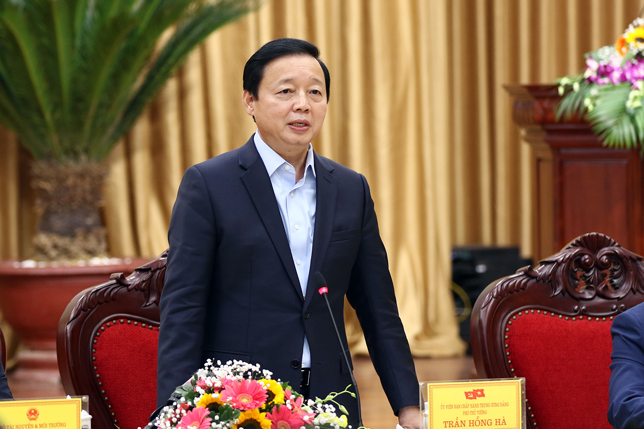 Phó Thủ tướng Chính phủ Trần Hồng Hà chủ trì Hội nghị lấy ý kiến Nhân dân về dự thảo Luật Đất đai (sửa đổi). (Ảnh: Cổng TTĐT Bộ TNMT)