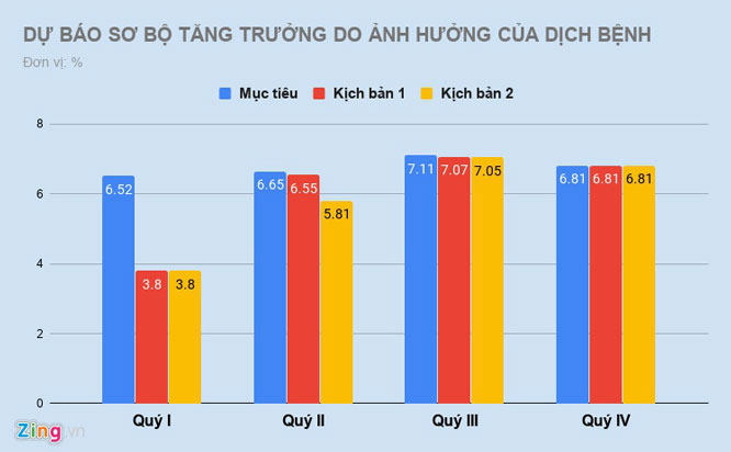 Theo đánh giá của Bộ Kế hoạch và Đầu tư, dịch do vi rút corona đã bắt đầu gây ra những tác động trực tiếp và gián tiếp tới kinh tế Việt Nam. Nếu dịch được khống chế trong quý I, tăng trưởng GDP quý này có thể chỉ đạt 3,8% thay vì mục tiêu 6,52% mà Chính phủ đề ra.