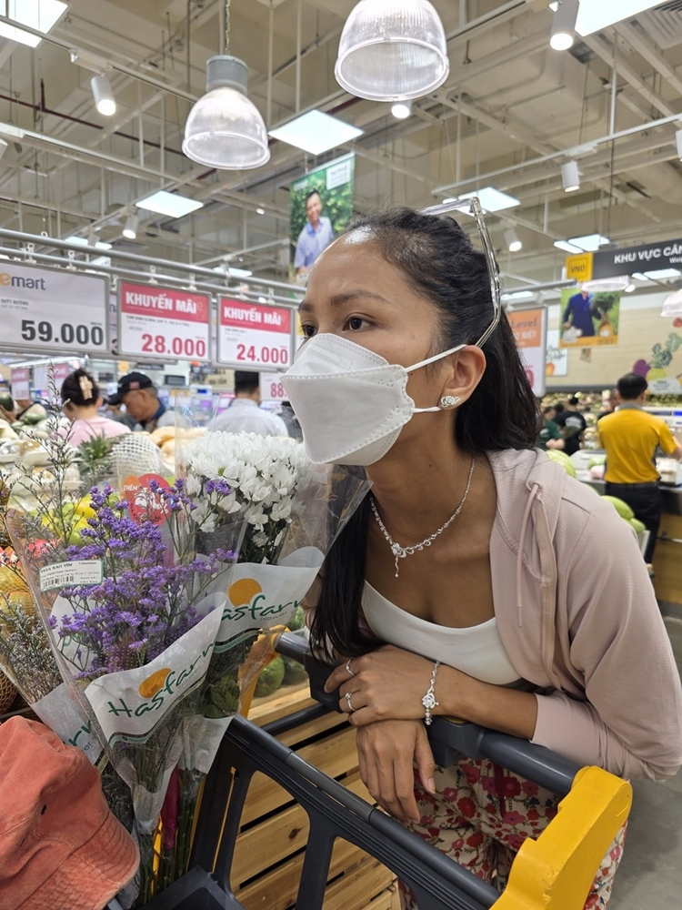 Về phía Tuấn Khôi, anh đăng tải anh bà xã cùng dòng trạng thái: "Đi chợ thôi mà cũng lấp lánh".