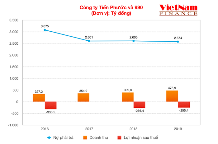 Việc các khoản lỗ ngày càng chồng chất khiến cho doanh nghiệp lâm vào cảnh mất vốn, cũng như đè nặng lên dòng tiền duy trì hoạt động. Tại ngày 31/12/2019, vốn chủ sở hữu của Tiến Phước và 990 giảm còn 197,9 tỷ đồng, lỗ lũy kế xấp xỉ 1.200 tỷ đồng.