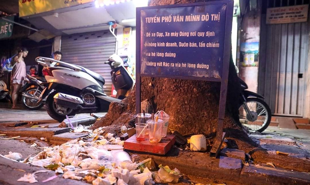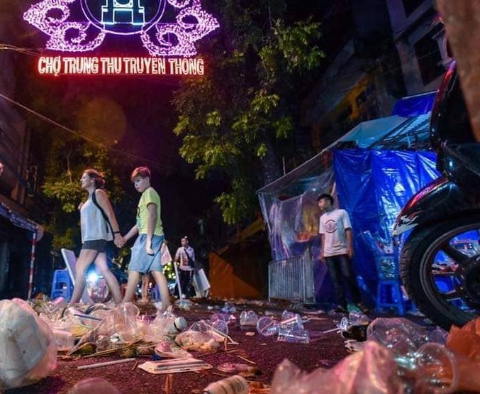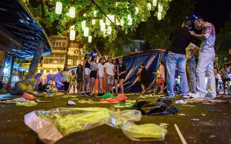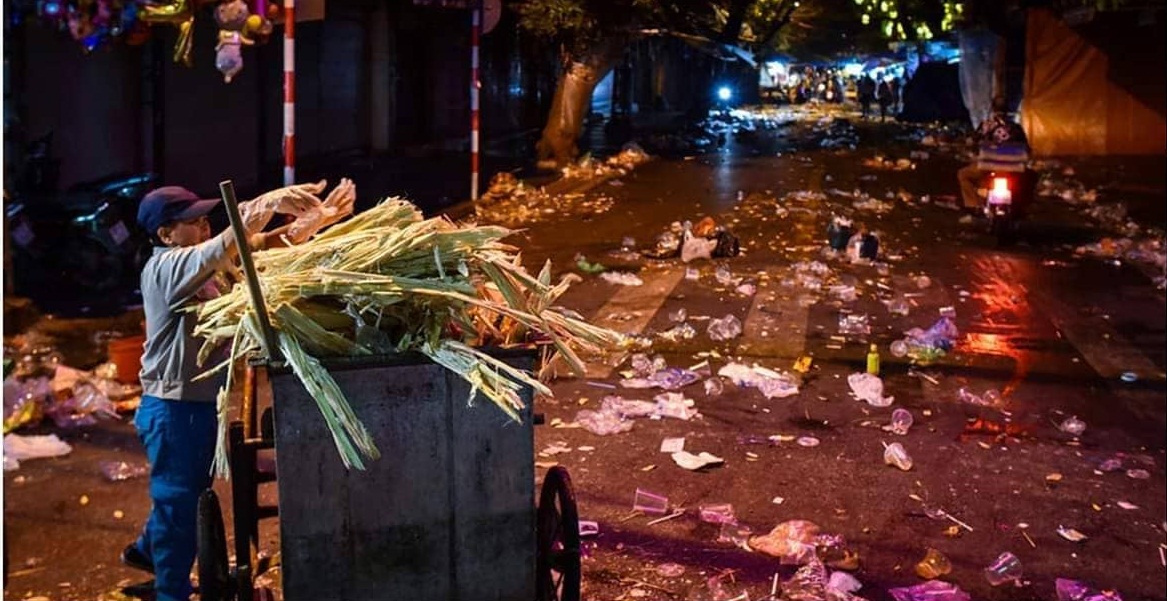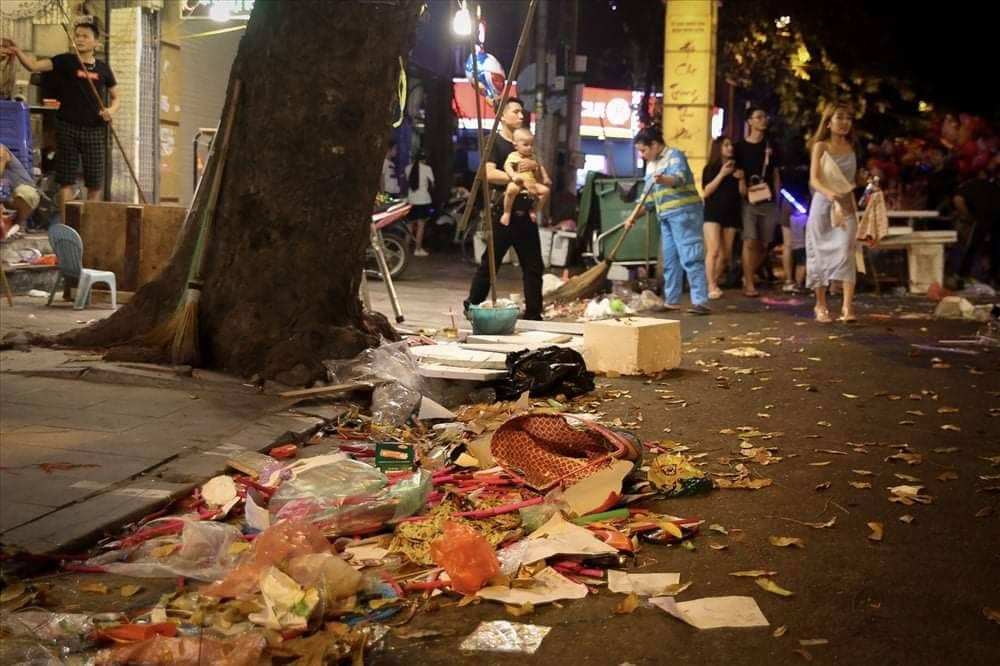 Tuy nhiên, chỉ sau một vài giờ, sau khi người dân và người bán hàng ra về, các tuyến phố đã ngập rác.