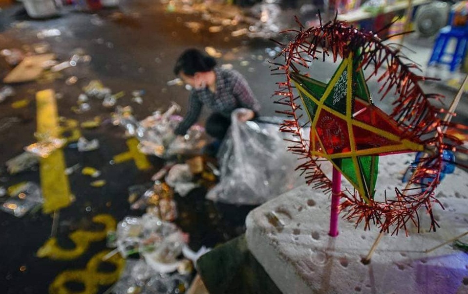 Chiếc đèn ông sao còn dùng được, có thể sẽ là món quà Trung Thu nhỏ lúc đêm muộn cho đứa trẻ nhà bác lao công
