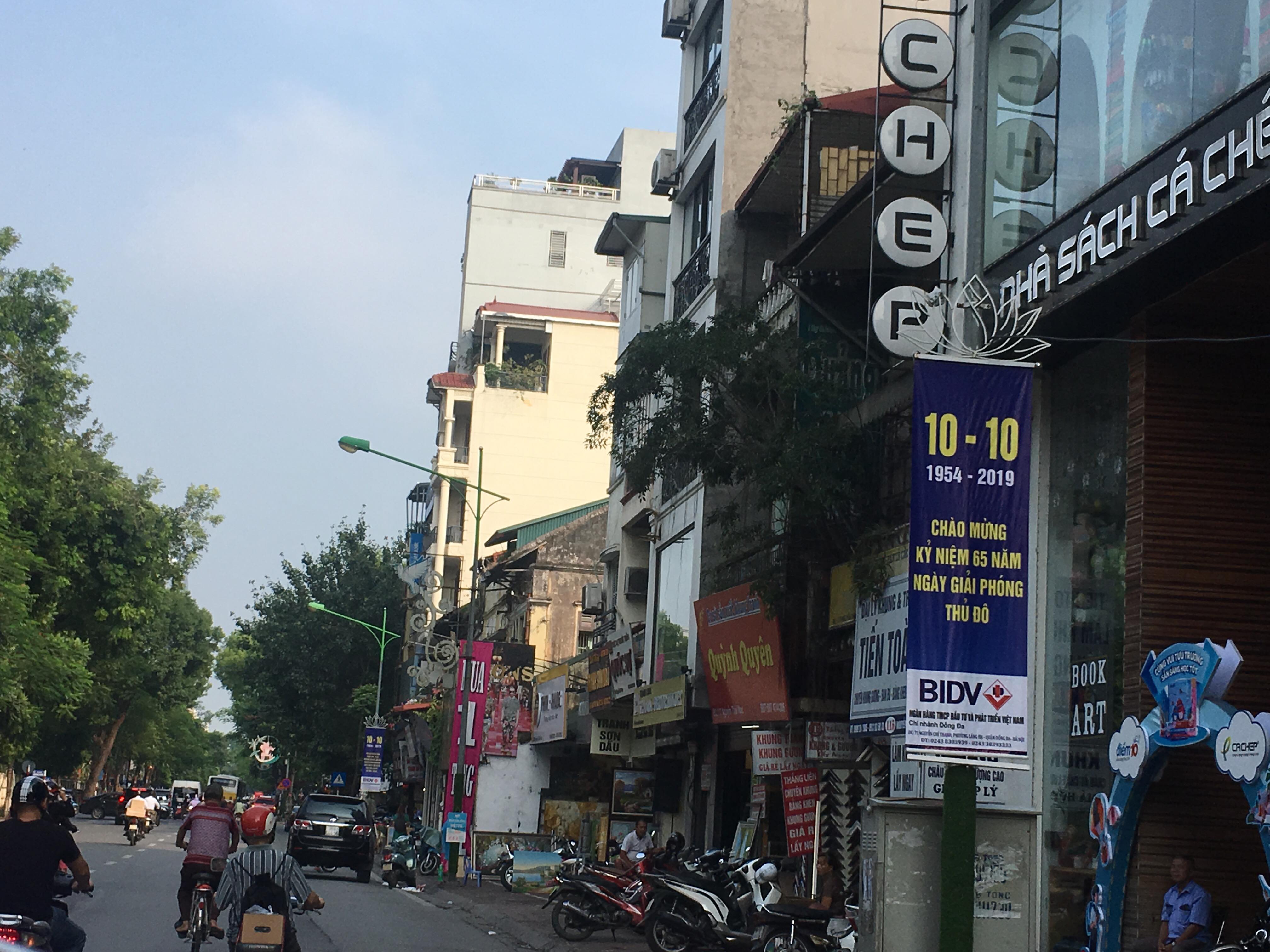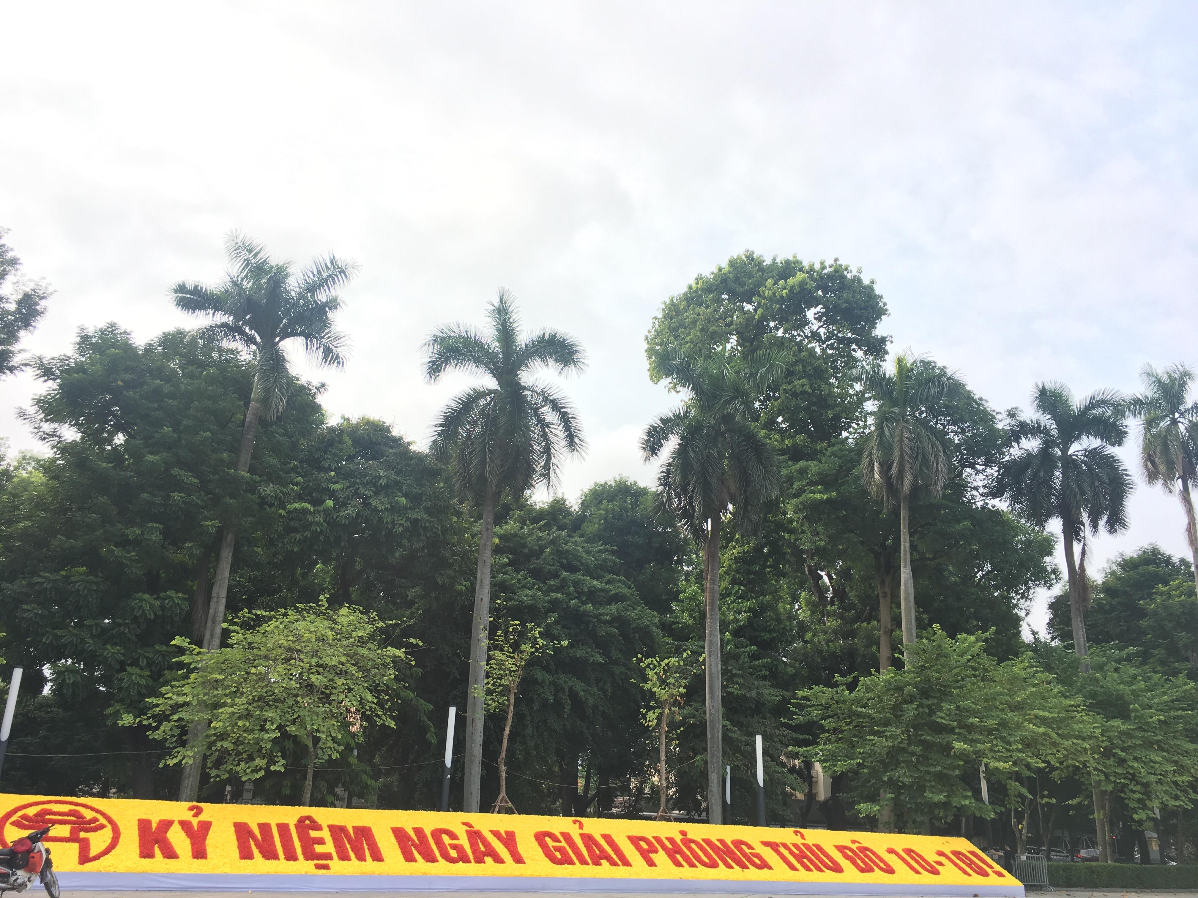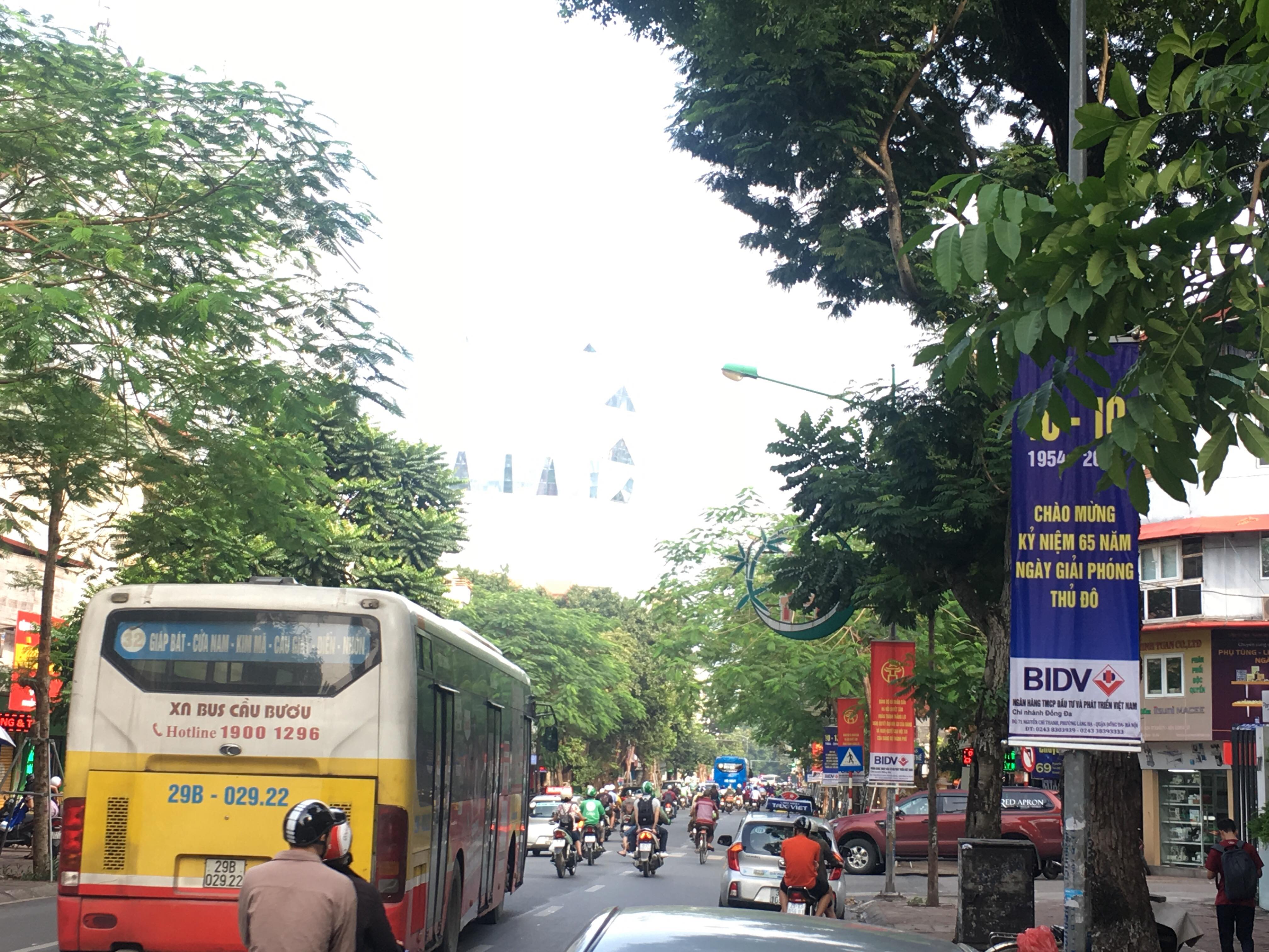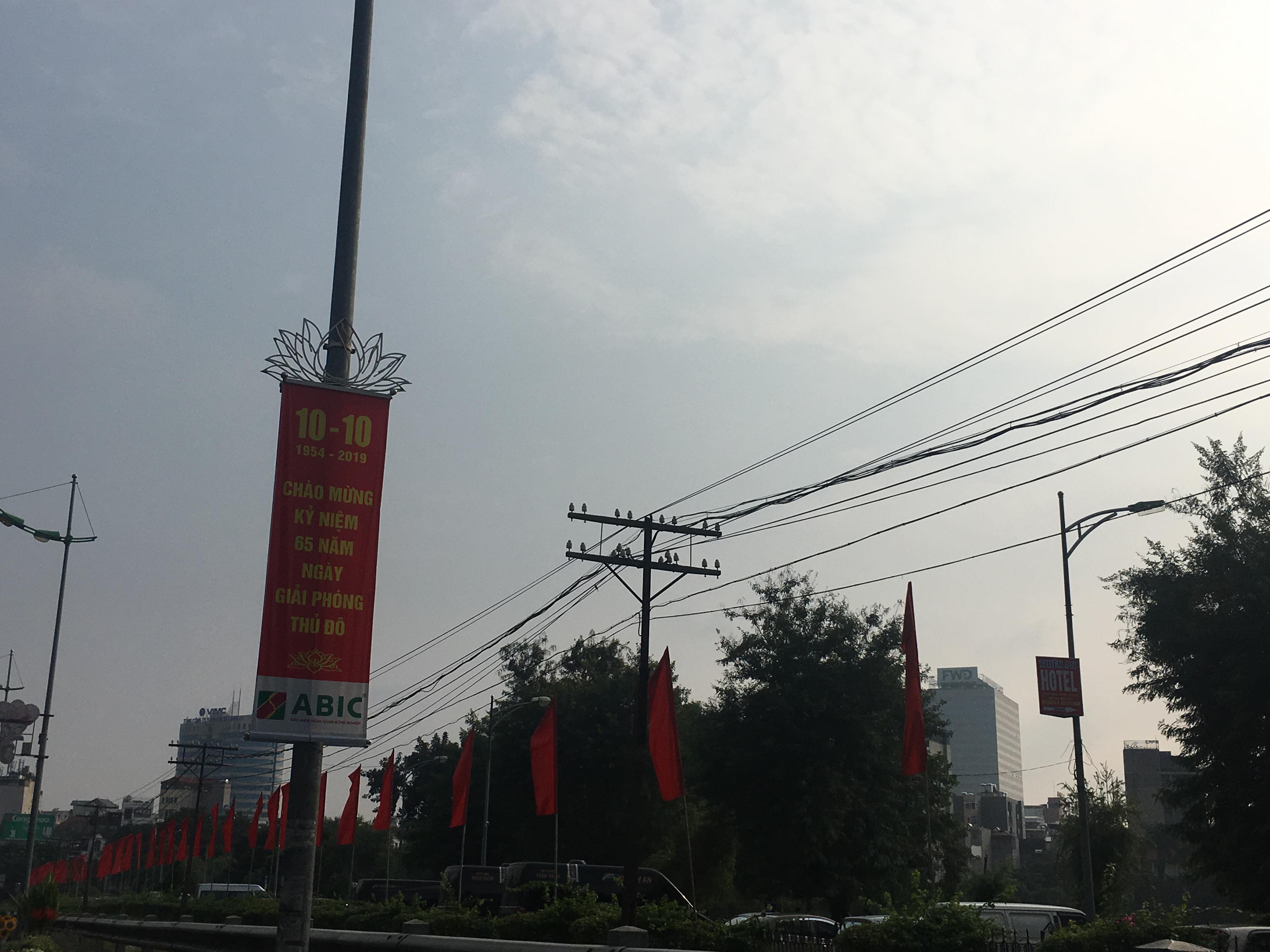 Hình ảnh băng rôn chào mừng kỉ niệm 65 năm Ngày Giải phóng Thủ đô trên con phố ở Hà Nội