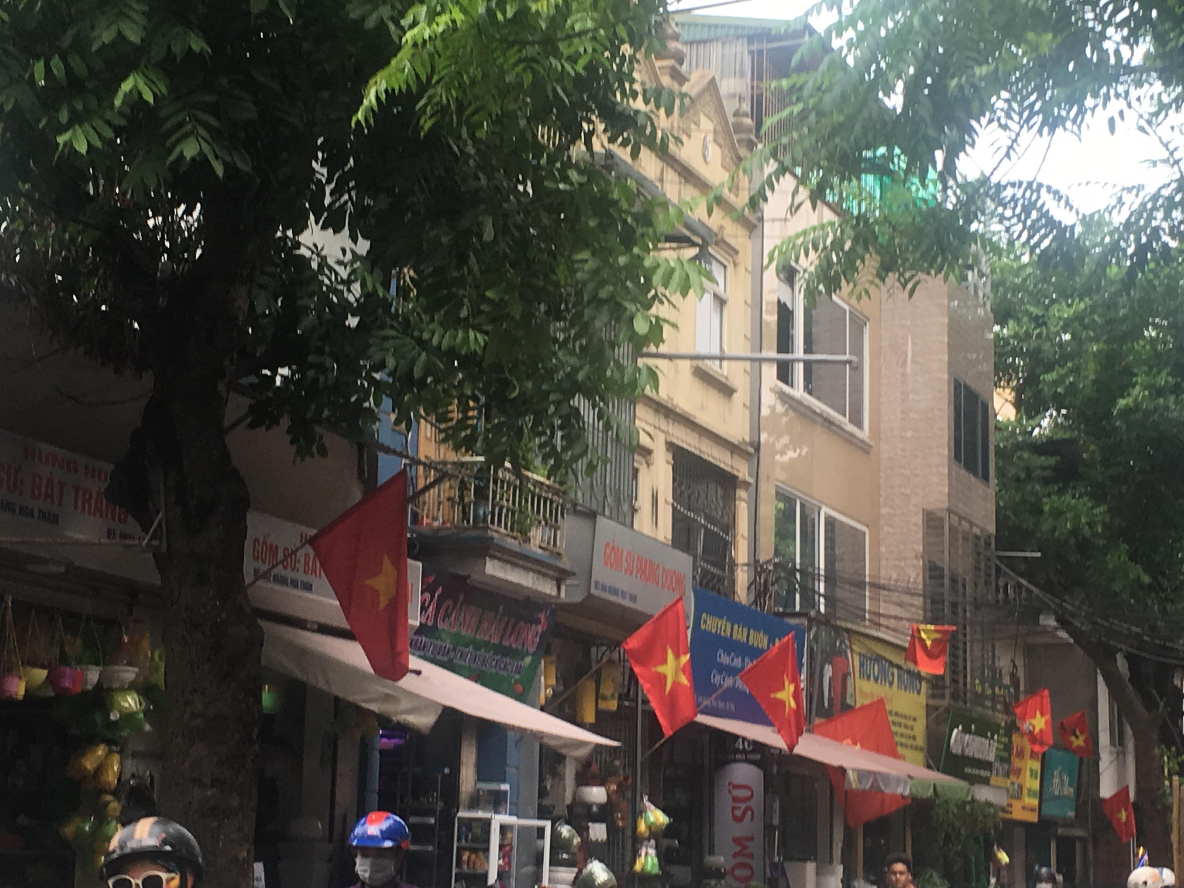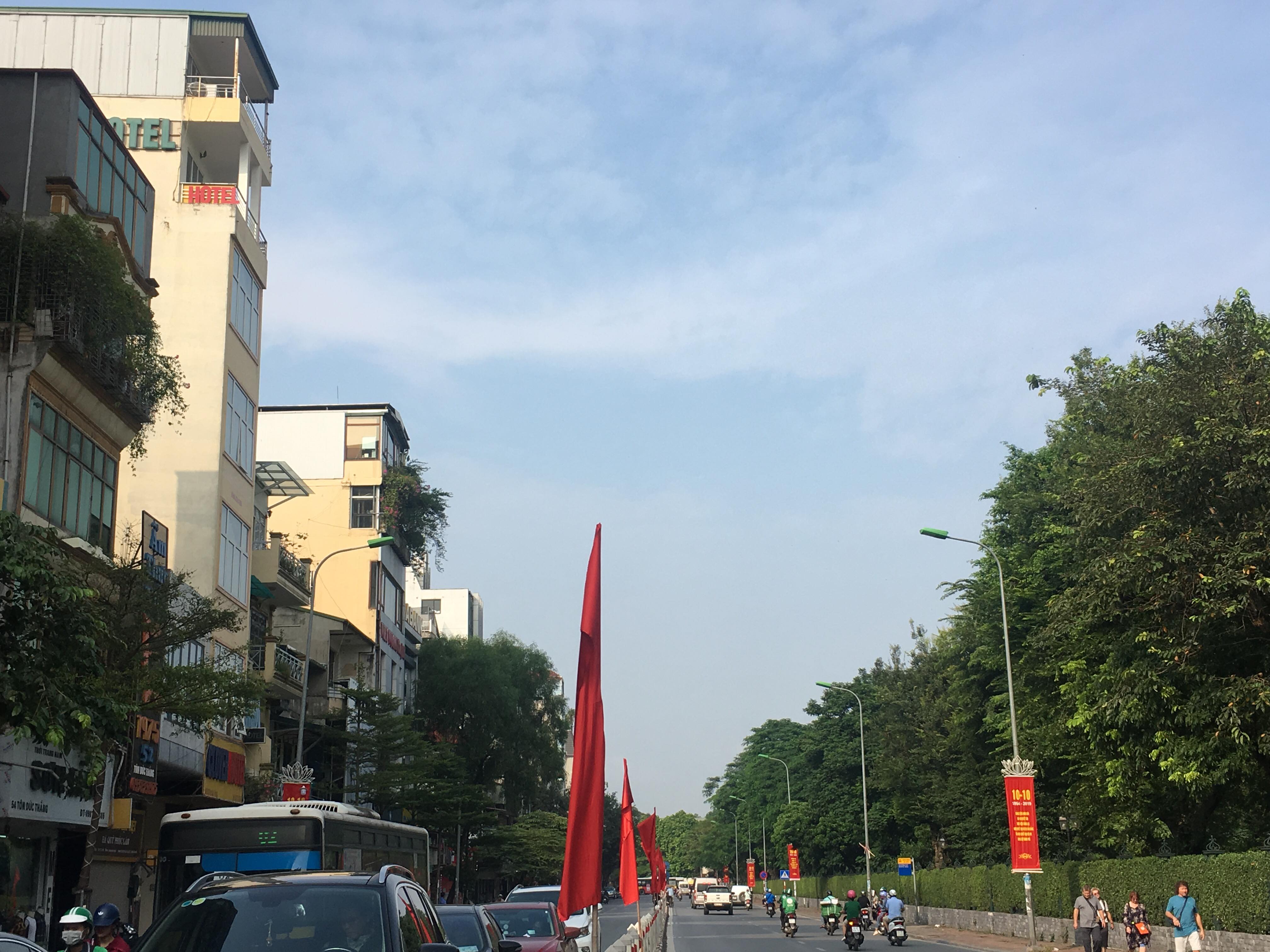 Phố Tôn Đức Thắng với sắc thắm của cờ đỏ sao vàng tràn ngập đường lớn