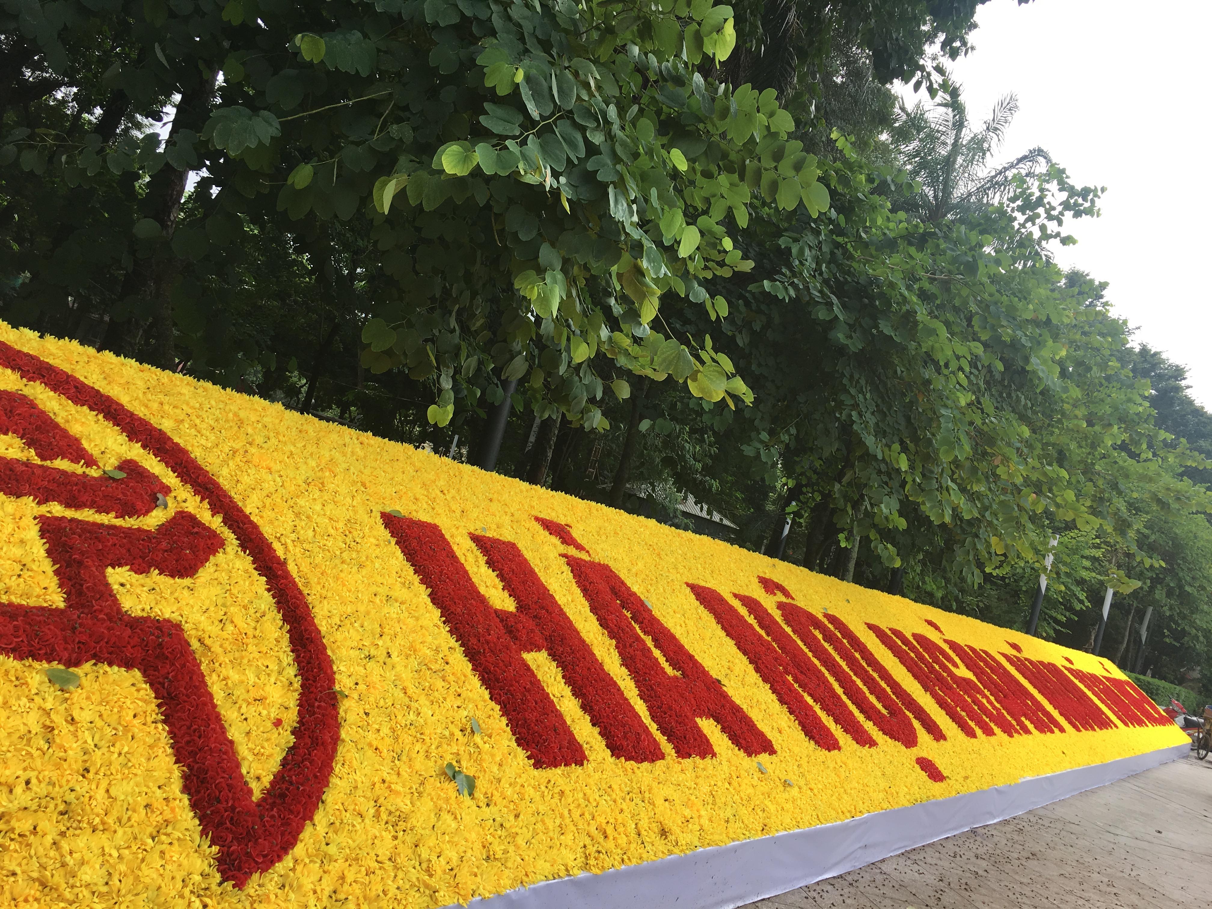 Lá cờ đỏ sao vàng cùng những biểu ngữ băng rôn đã thể hiện quyết tâm của người dân Thủ đô