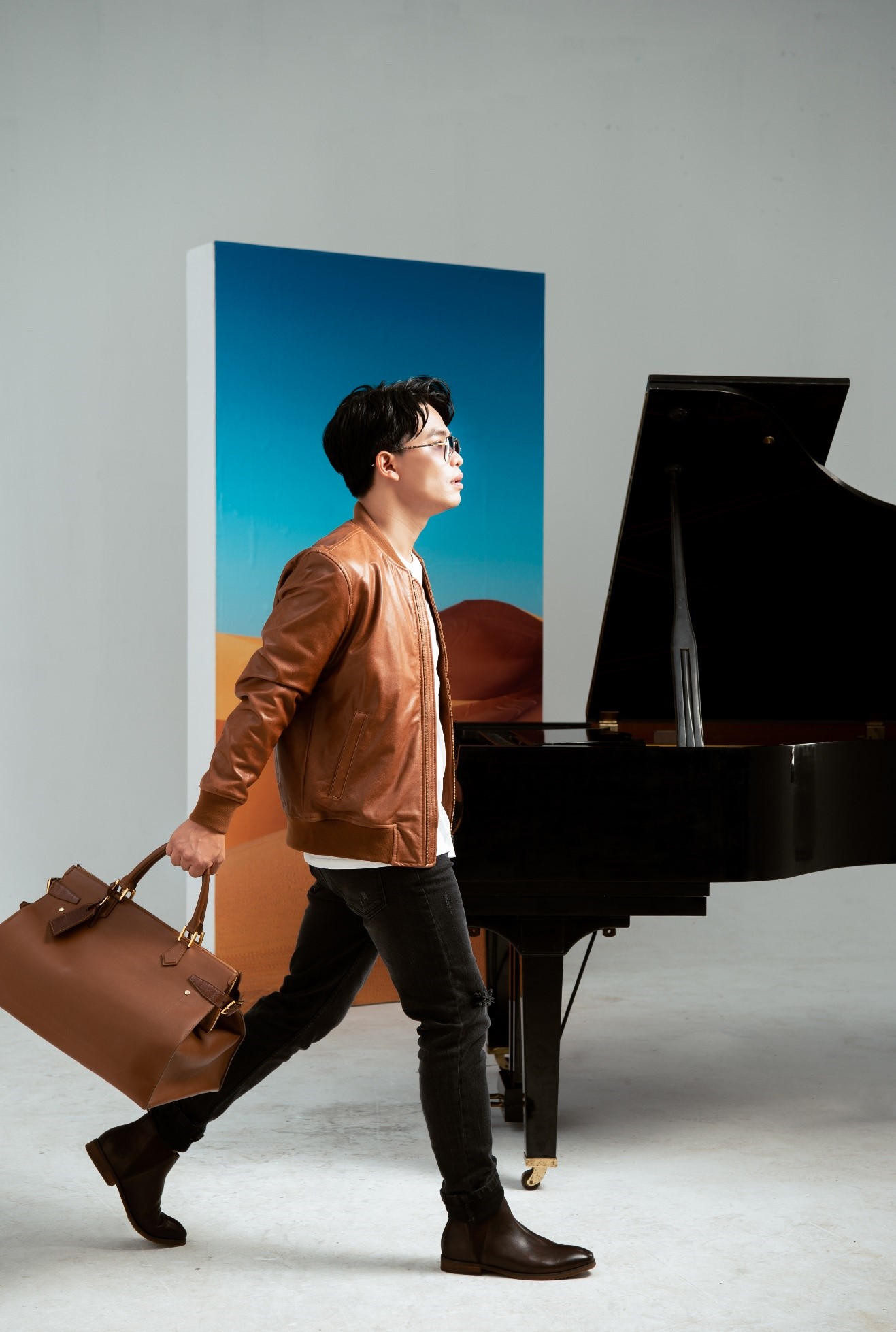 Khoảnh khắc đẹp xuất hiện ở bất cứ đâu và bất cứ khi nào, trong âm nhạc và thời trang cũng vậy, sự cộng hưởng hay thăng hoa trong âm nhạc luôn tạo được nguồn cảm hứng bất tận mỗi khi lên đồ của nhạc sĩ Dương Trường Giang. Bắt đầu bằng một chiếc áo da bomber năng động với màu sắc vàng bò trẻ trung, cùng chiếc túi du lịch, thấm đượm hơi thở phong cách tân cổ điển, hoàn tất cho sét đồ là một đôi giày da chelsea boot lịch lãm, đã vô hình tạo nên một bức tranh hoàn hảo cho người chủ sở hữu.
