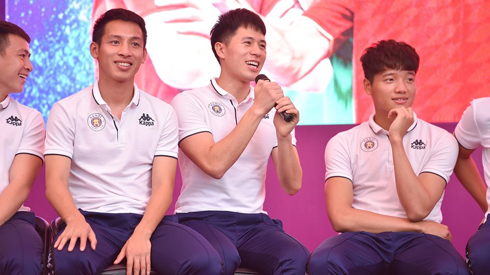Tại buổi giao lưu này, các em học sinh cũng đặt hàng loạt câu hỏi về quá trình tập luyện, thi đấu của các cầu thủ thuộc đội bóng đang sở hữu hàng loạt “sao” sáng của bóng đá Việt Nam - CLB Hà Nội. Trước câu hỏi “Anh Dũng ơi, em nghĩ không có anh Việt Nam không thể vô địch được AFF Cup 2018 và mong anh chia sẻ bí quyết nào để anh có cơ thể khỏe mạnh, cường tráng vậy”, Đỗ Hùng Dũng cho biết: “Bóng đá là môn thể thao tập thể và anh chỉ góp sức cùng các đồng đội vào thành công chung đó. Muốn có sức khoẻ, các em hãy rèn luyện thể thao hàng ngày và có lối sống lành mạnh. Anh thấy nhiều bạn trong trường có chiều cao còn cao hơn anh, đây là một điều kiện tốt để các em có một cơ thể cường tráng, mạnh mẽ”.