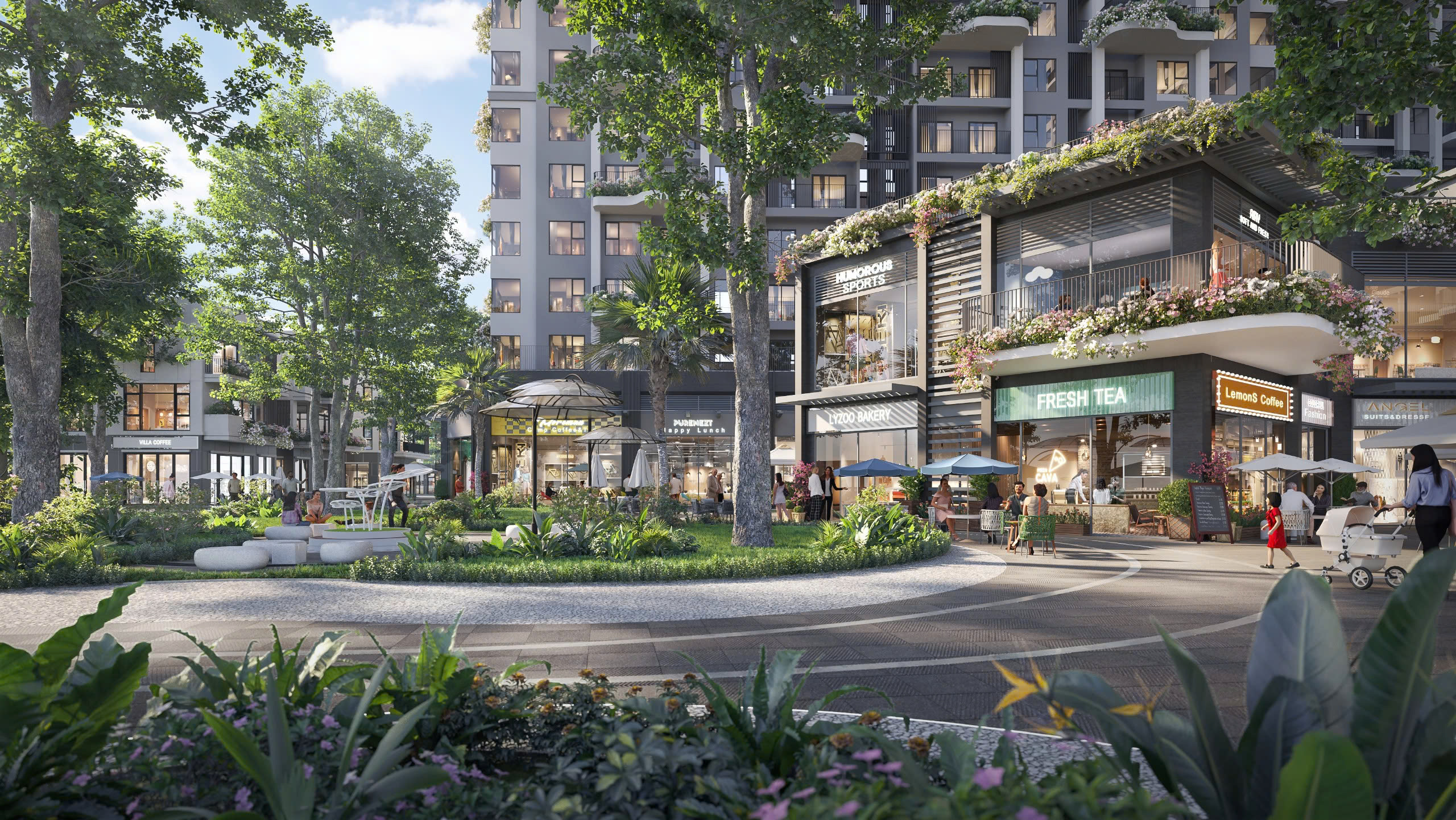Cảnh quan tại khối đế hấp dẫn sự tập trung của cư dân, kích thích nhu cầu tiêu dùng