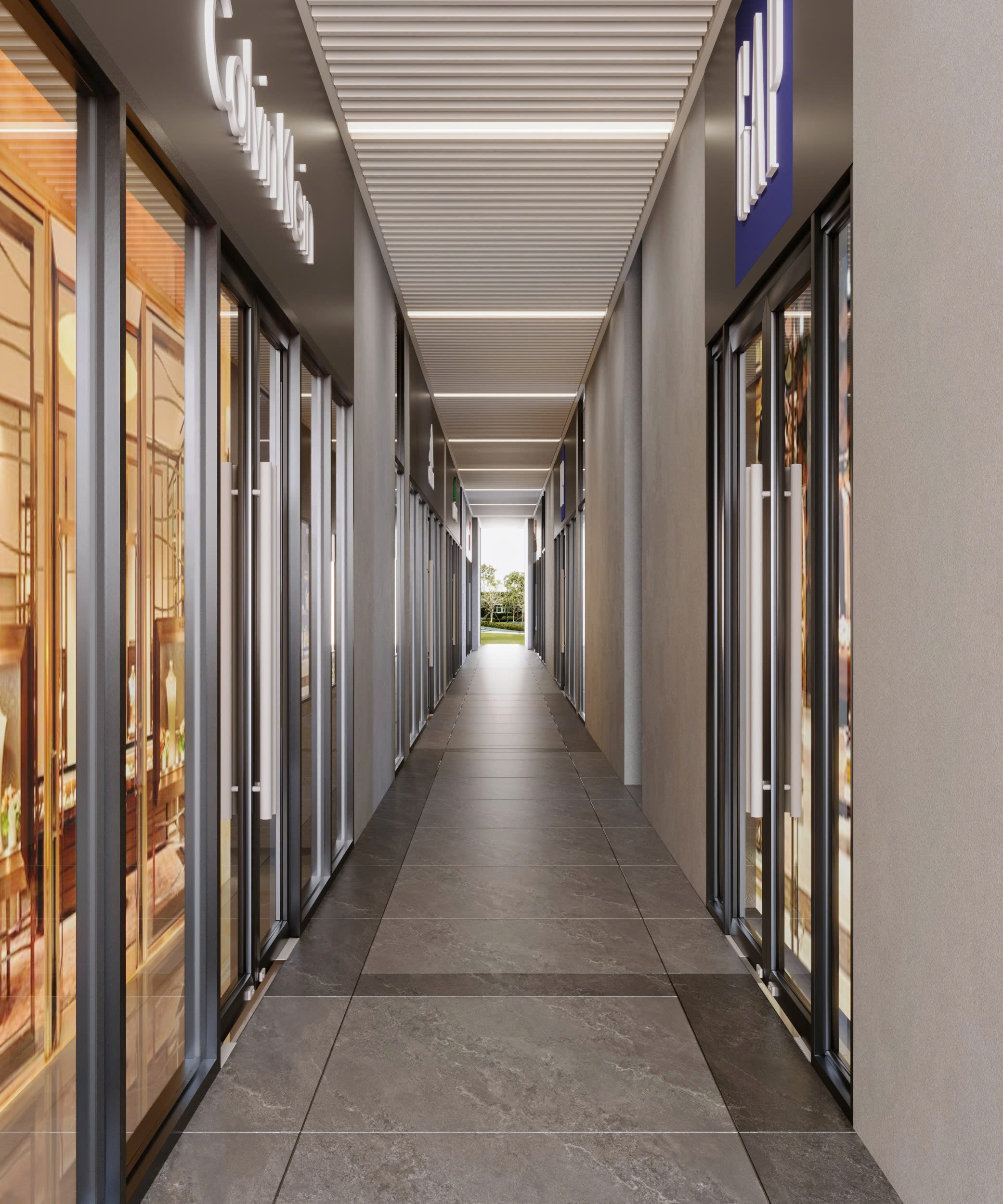 Hành lang sang trọng của không gian thương mại khối đế