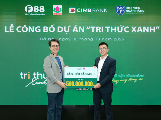Ngày 03/10/2025, Công ty F88 chính thức công bố dự án “Tri thức Xanh” – một chương trình giáo dục tài chính cộng đồng với quy mô toàn quốc, hướng đến công nhân, lao động tự do và phụ nữ yếu thế. Dự án được triển khai dưới sự phối hợp chuyên môn của Học viện Ngân hàng, cùng sự đồng hành và tài trợ từ Bảo hiểm Bảo Minh và Ngân hàng CIMB Việt Nam, kết hợp giữa đào tạo thực tiễn và ứng dụng công nghệ để mang lại những kiến thức tài chính dễ tiếp cận và áp dụng ngay trong đời sống.