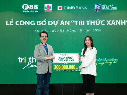 Là đối tác chiến lược gắn bó nhiều năm với F88, ngân hàng CIMB Việt Nam tiếp tục đồng hành cùng dự án “Tri Thức Xanh” bởi ý nghĩa nhân văn mà chương trình mang lại. Bà Lê Hiền Trang - Giám đốc Khối Chiến lược và Truyền thông Ngân hàng CIMB Việt Nam chia sẻ: “CIMB Việt Nam đồng hành cùng Tri thức Xanh với niềm tin rằng giáo dục tài chính là bước khởi đầu cho một tương lai tài chính vững vàng. Khi mỗi người hiểu cách chi tiêu thông minh và tiết kiệm đúng cách, họ sẽ tự tin tiếp cận các dịch vụ ngân hàng và làm chủ cuộc sống tài chính của chính mình.”