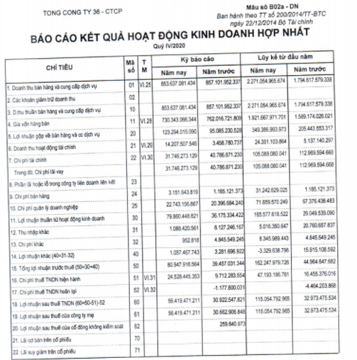 Nguồn: BCTC hợp nhất quý IV/2020 của Tổng công ty 36.