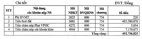 Quyết định nêu rõ, Công ty CP gạch Tuy nen Bình Định phát sinh khoản nợ thuế đã quá 90 ngày kể từ ngày hết thời hạn nộp thuế và không chấp hành quyết định xử phạt vi phạm hành chính về quản lý thuế theo thời hạn ghi trên quyết định xử phạt. Số tiền bị cưỡng chế gần gần 493 triệu đồng.