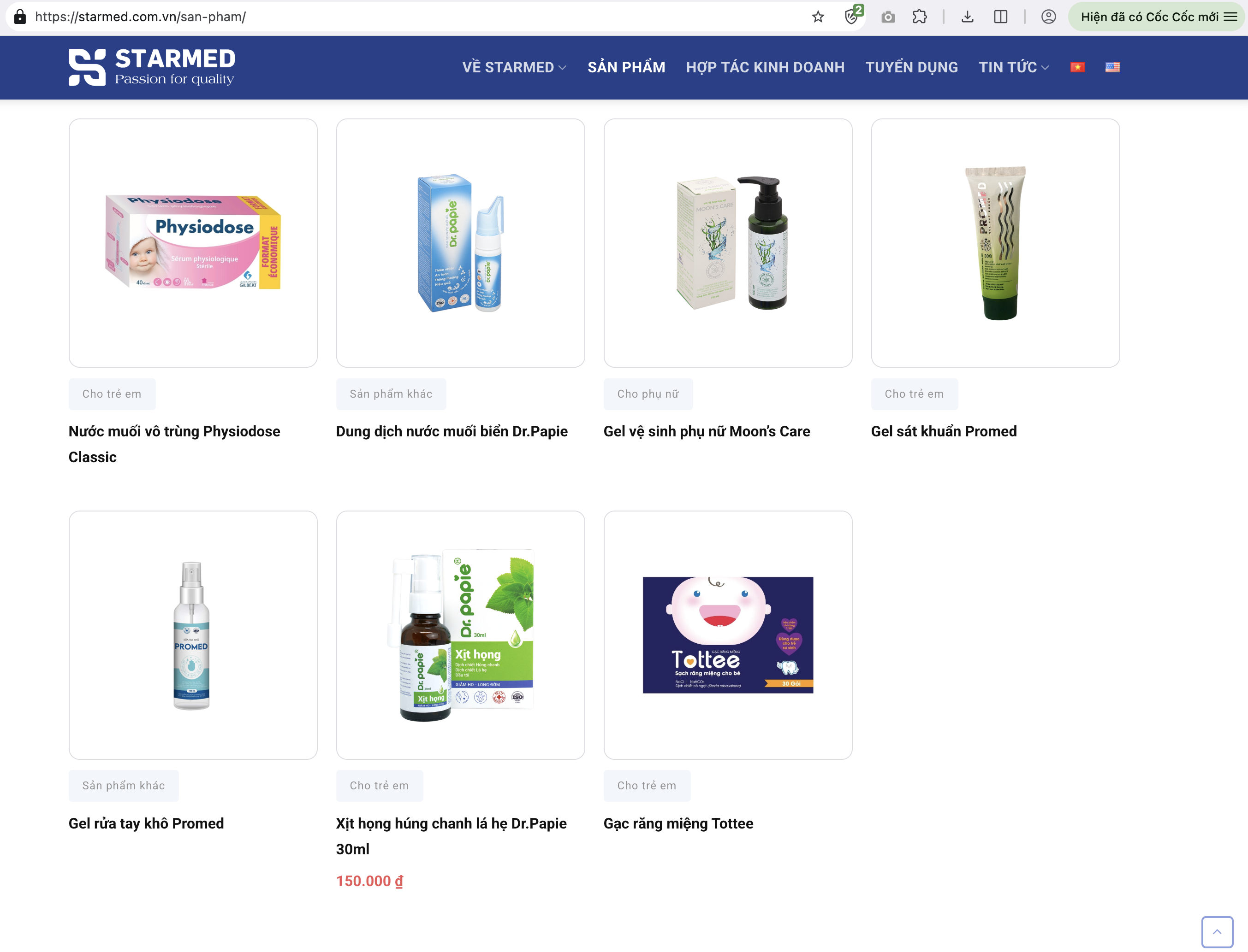 Một số sản phẩm trên website của Công ty CP Tập đoàn Dược phẩm Starmed. (Ảnh chụp màn hình/starmed.com.vn)