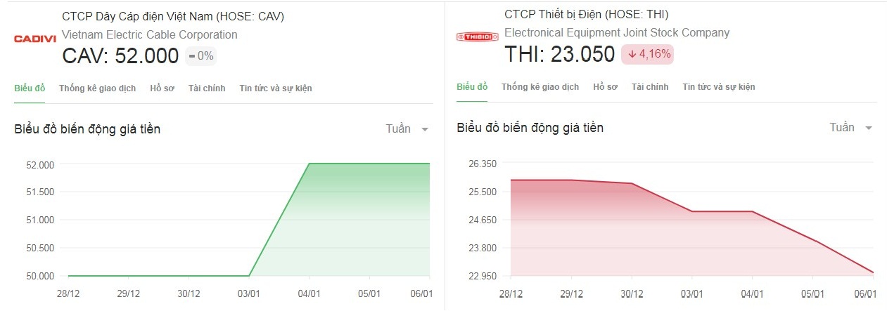 Thị giá của CAV và THI trong khoảng 1 tuần. (Nguồn: vietstock.vn)