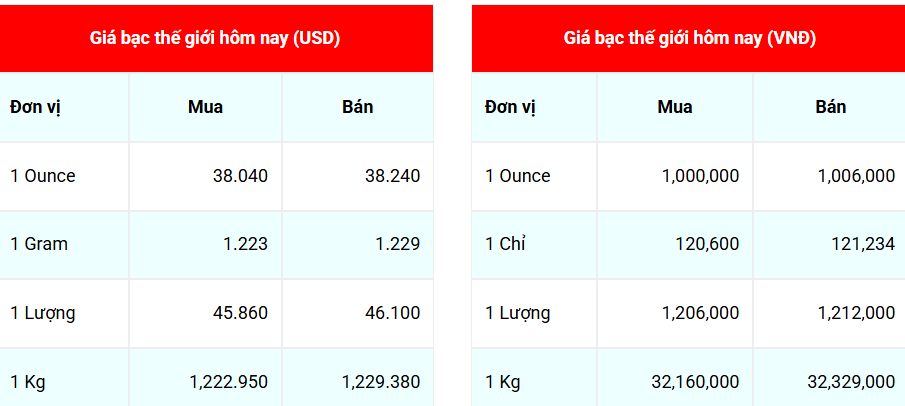 Giá bạc thế giới hôm nay