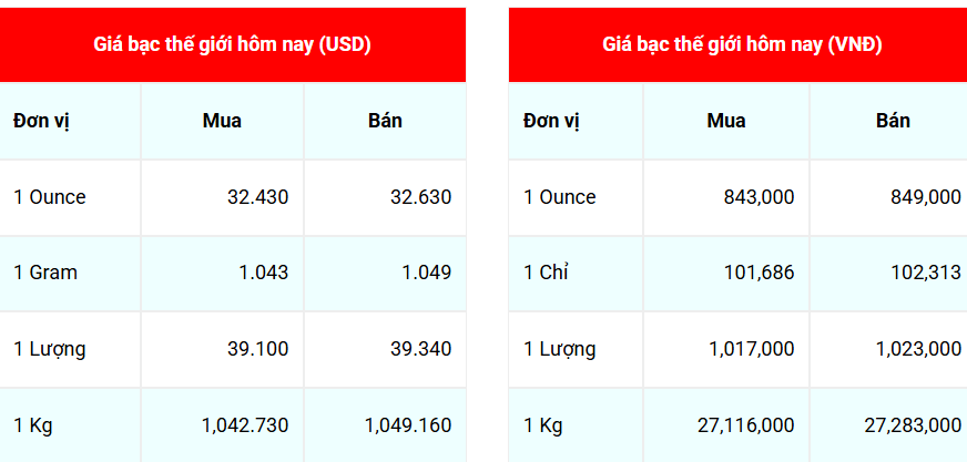 Thông tin mới nhất về giá bạc tại Hà Nội và TP. Hồ Chí Minh ngày 2/5/2025: