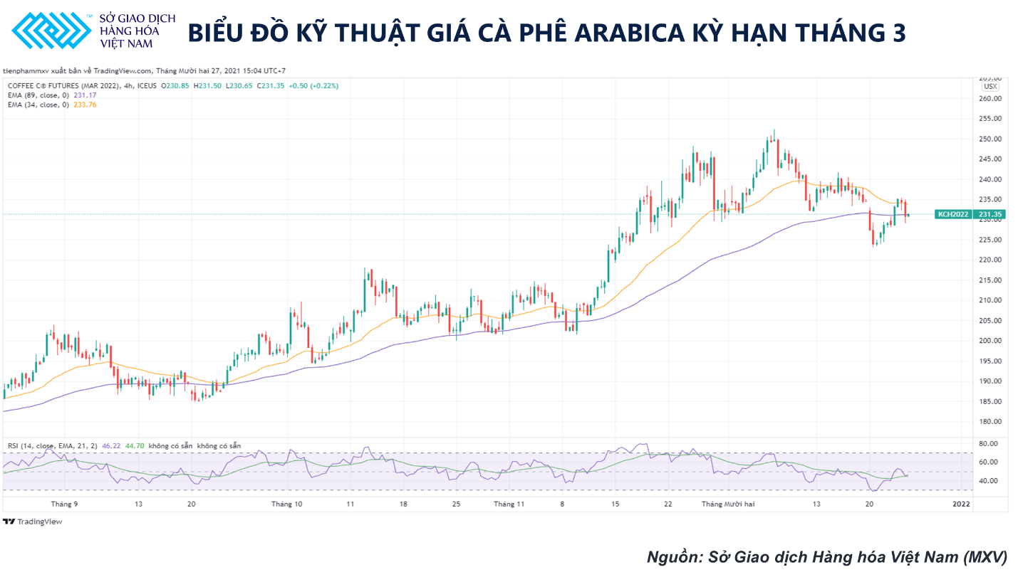 Biểu đồ kỹ thuật giá cà phê Arabica kỳ hạn tháng 3 (Nguồn: Sở giao dịch Hàng hóa Việt Nam)