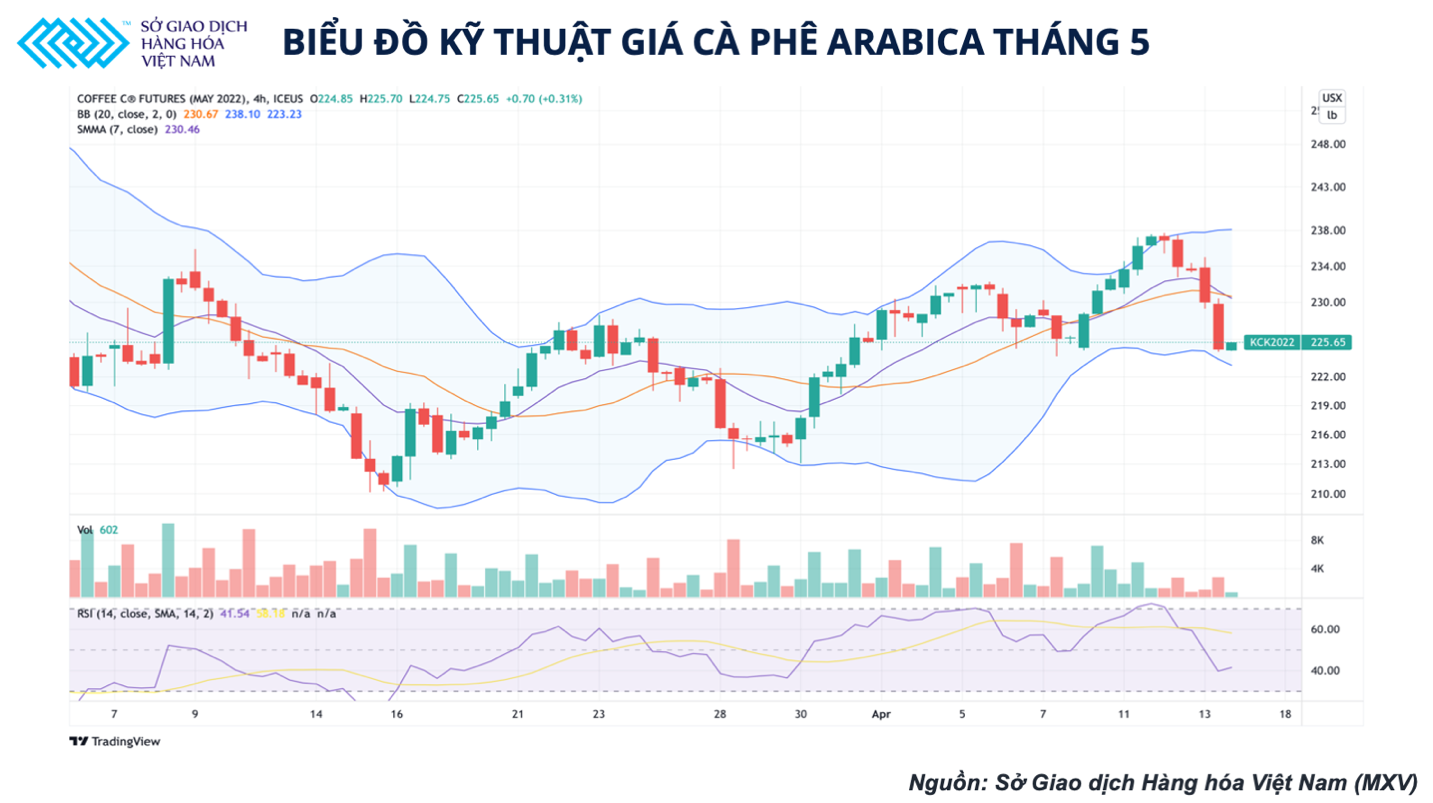 Xét đến yếu tố kỹ thuật, chỉ số RSI đang hướng xuống dưới vùng 50. Đà giảm của giá suy yếu sau khi vượt qua ngưỡng hỗ trợ 225 cents. Do các quỹ đầu tư đã đồng loạt chốt lời trong phiên hôm qua, giá hôm nay có khả năng dao động trong khoảng từ 220 cents đến 225 cents.