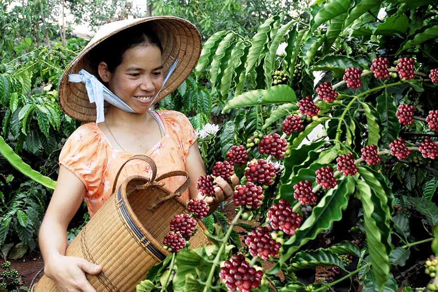 Người nông dân thu hoạch cà phê.