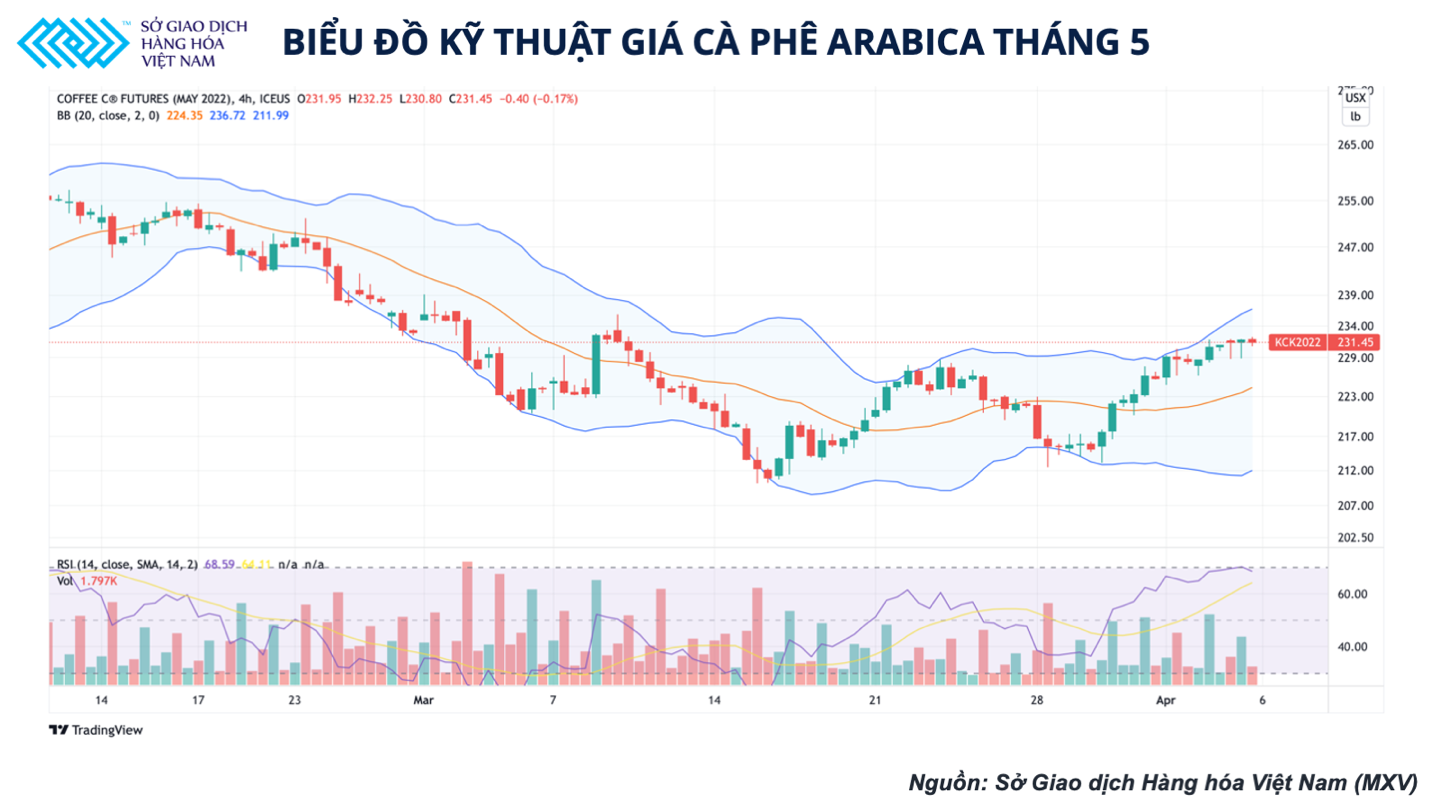 Biểu đồ kỹ thuật giá cà phê Arabica tháng 5 (Nguồn: Sở giao dịch Hàng hóa Việt Nam)