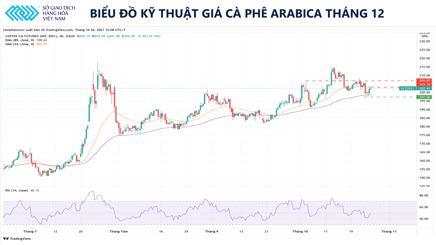Biểu đồ kỹ thuật giá cà phê Arabica tháng 12(Nguồn: Sở giao dịch Hàng hóa Việt Nam)