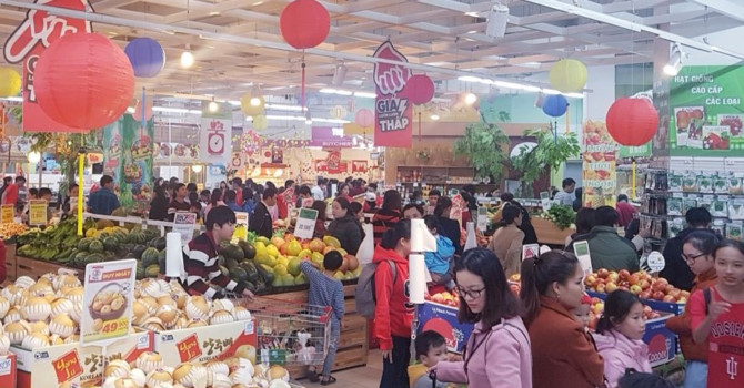 | Tết Nguyên đán Kỷ Hợi 2019 đang đến gần Trên cả nước hệ thống các siêu thị cửa hàng bán lẻ đều đã chuẩn bị nguồn hàng đầy đủ sẵn sàng phục vụ người dân Trong đó hai thị trường có sức mua lớn nhất là Thủ đô Hà Nội và Thành phố Hồ Chí Minh càng những ngày cận tết thì sức nóng của hoạt động mua sắm sẽ càng tăng nhiệt |