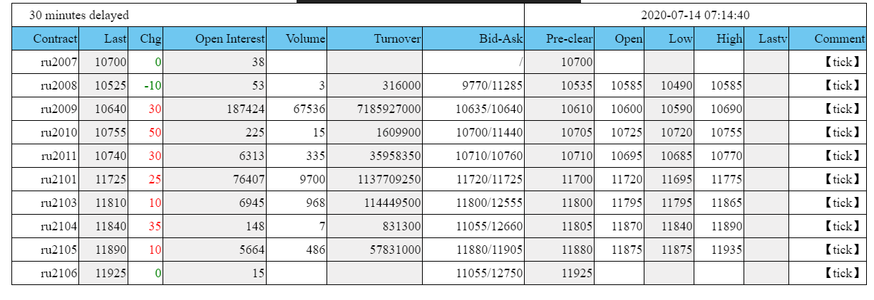 Giá cao su RSS3 tại sàn Thượng Hải lúc 8h ngày 14/7/2020 (giờ Hà Nội)