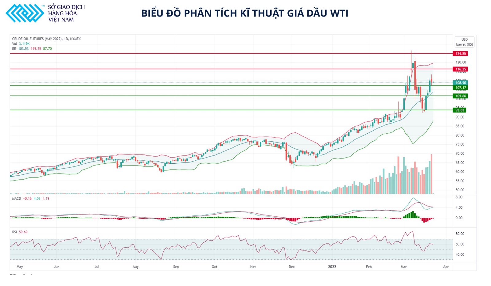 Biểu đồ phân tích kỹ thuật giá dầu WTI (Nguồn: Sở giao dịch Hàng hóa Việt Nam)
