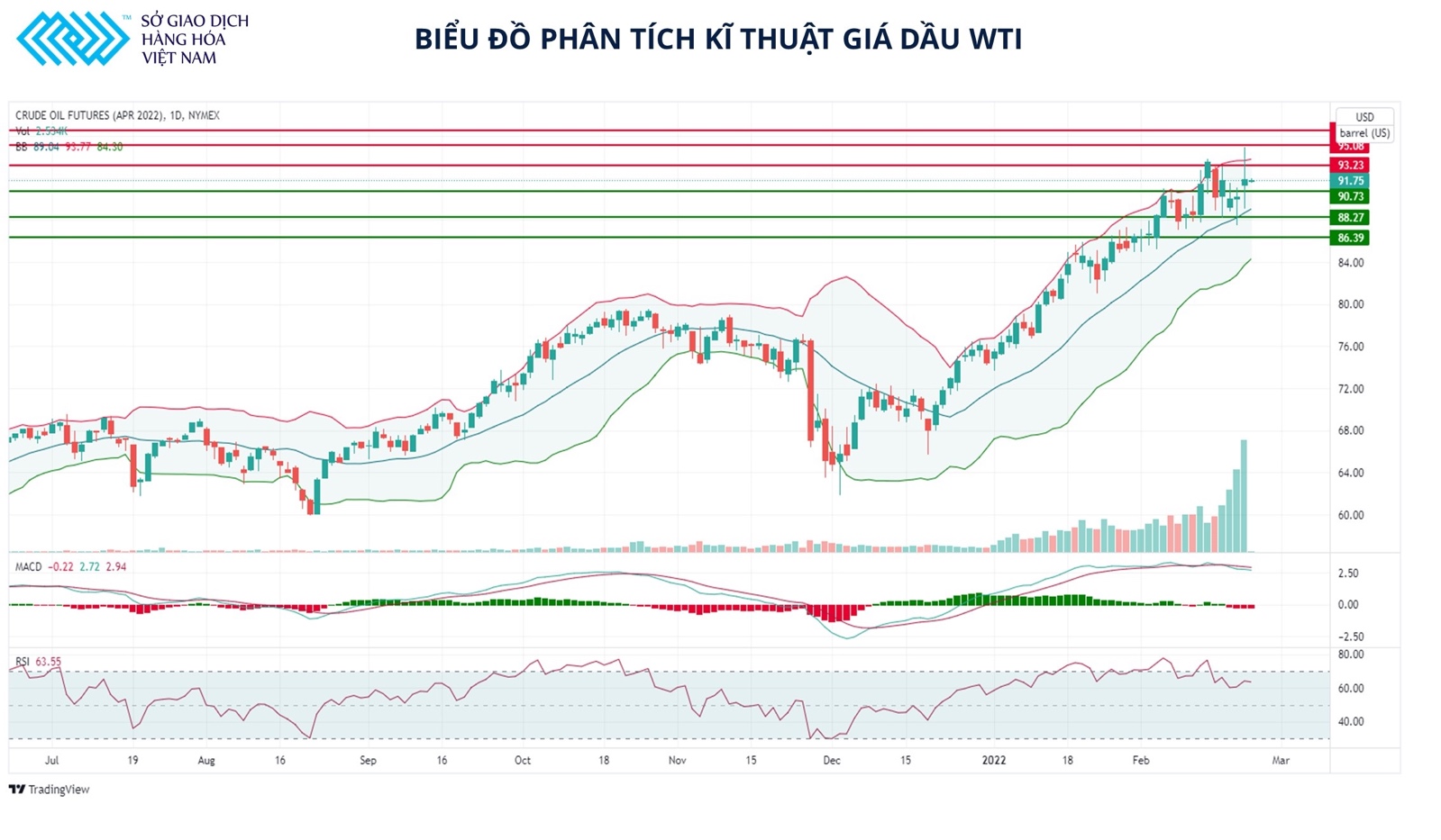 Biểu đồ phân tích kỹ thuật giá dầu WTI (Nguồn: Sở giao dịch Hàng hóa Việt Nam)