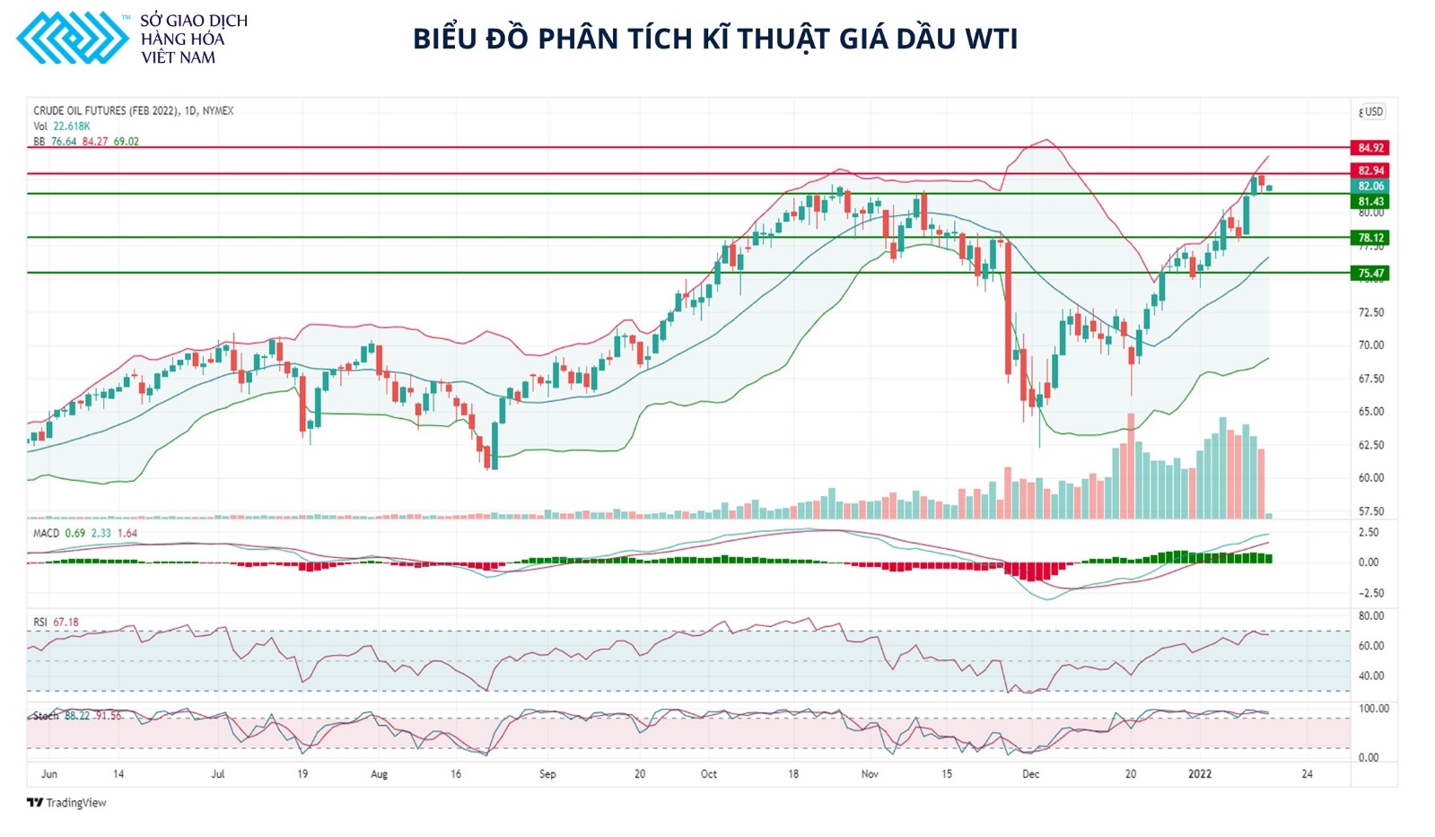 Biểu đồ phân tích kỹ thuật giá dầu WTI (Nguồn: Sở giao dịch Hàng hóa Việt Nam)