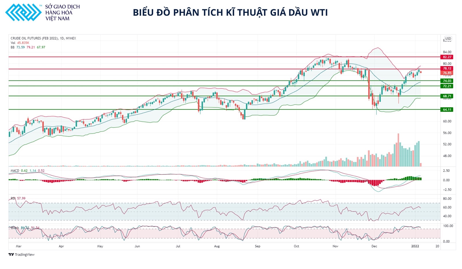 Biểu đồ phân tích kỹ thuật giá dầu WTI (Nguồn: Sở giao dịch Hàng hóa Việt Nam)