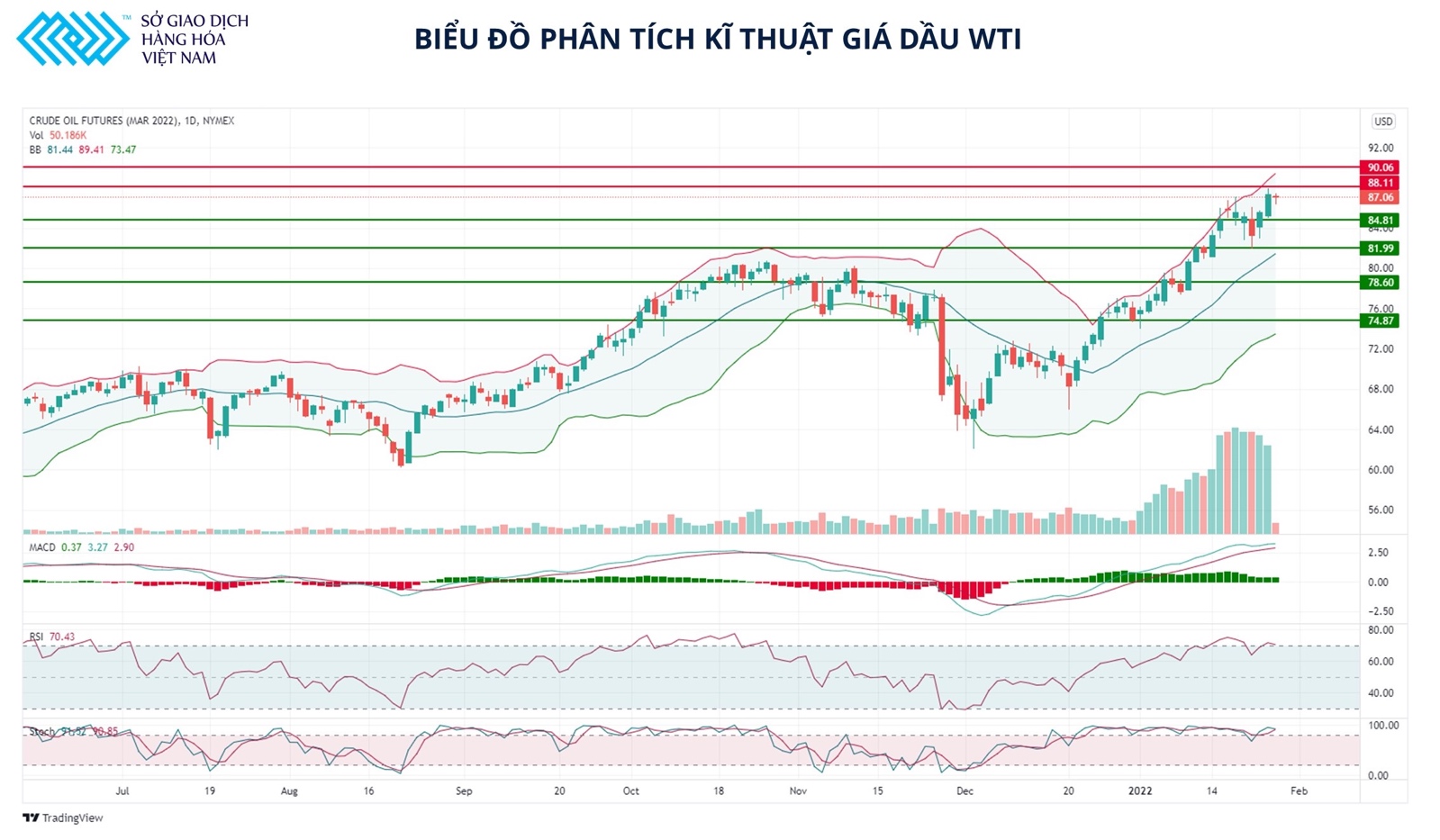 Biểu đồ phân tích kỹ thuật giá dầu WTI (Nguồn: Sở giao dịch Hàng hóa Việt Nam)