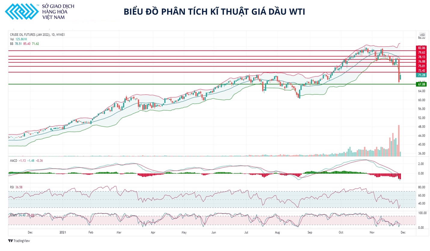 Biểu đồ phân tích kỹ thuật giá dầu WTI (Nguồn: Sở giao dịch Hàng hóa Việt Nam)