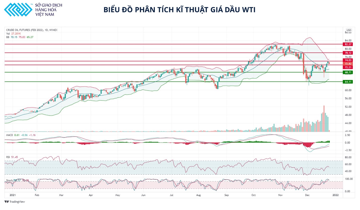 Biểu đồ phân tích kĩ thuật giá dầu WTI (Nguồn: Sở giao dịch Hàng hóa Việt Nam)
