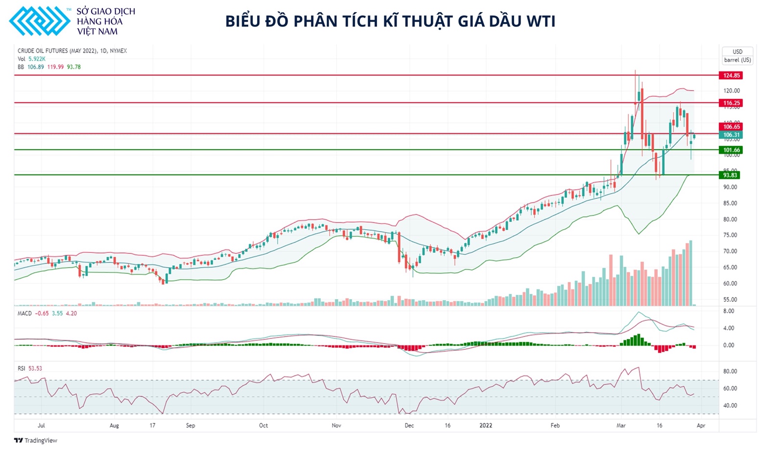 Biểu đồ phân tích kỹ thuật giá dầu WTI (Nguồn: Sở giao dịch Hàng hóa Việt Nam)