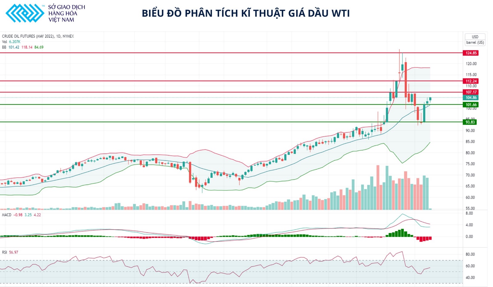 Nhiều khả năng giá WTI sẽ test lại vùng 110 USD/thùng trong phiên hôm nay.