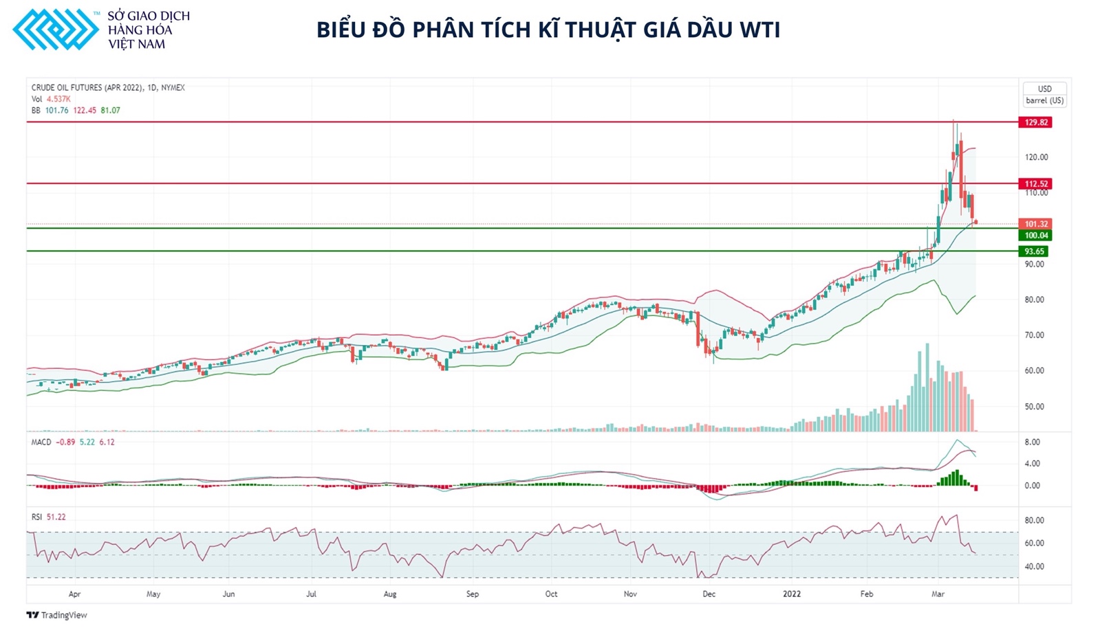 Biểu đồ phân tích kĩ thuật giá dầu WTI (Nguồn: Sở giao dịch Hàng hóa Việt Nam)