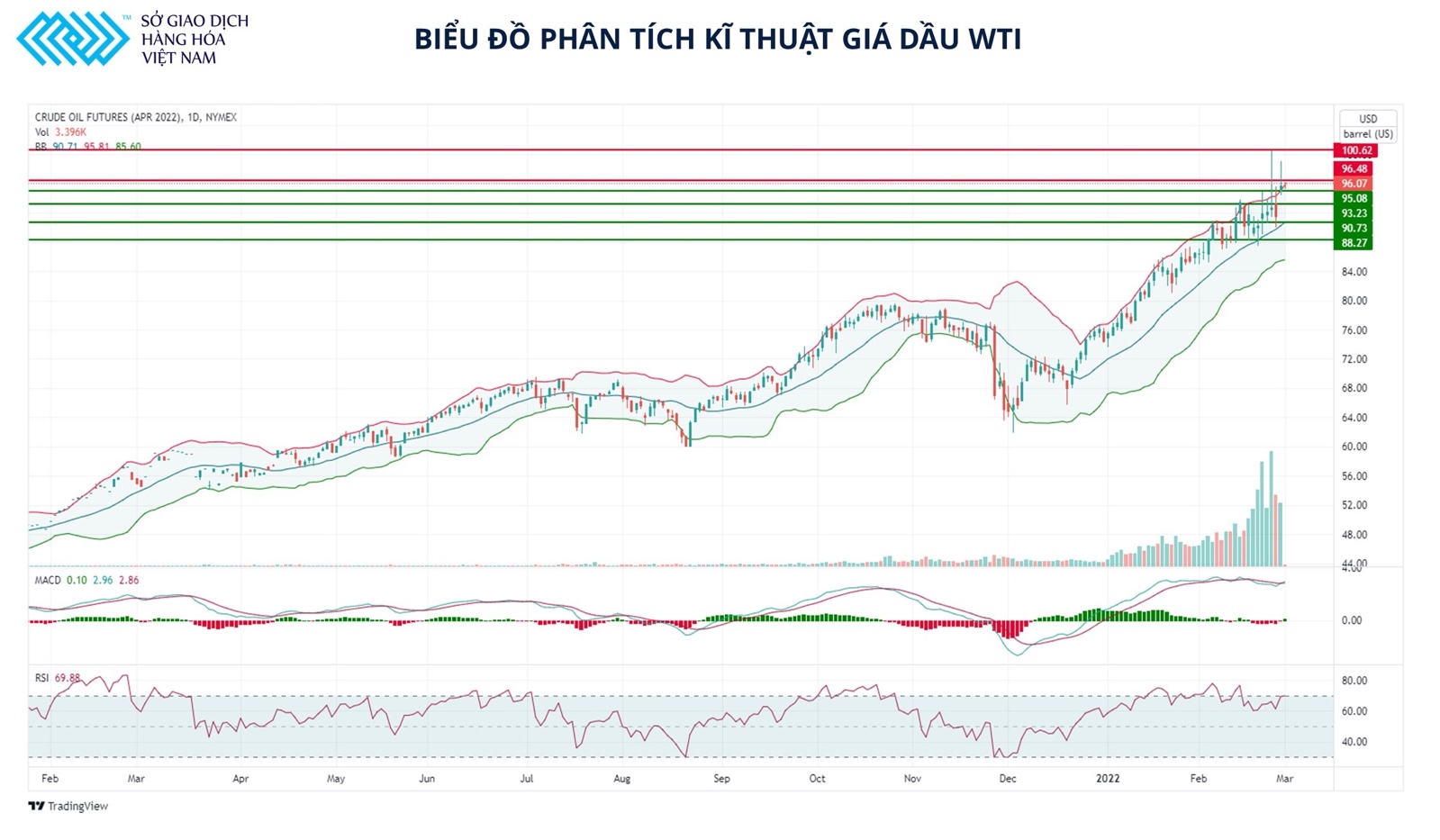 Biểu đồ phân tích kĩ thuật giá dầu WTI (Nguồn: Sở giao dịch Hàng hóa Việt Nam)