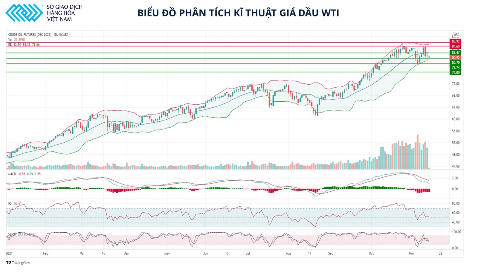 Biều đồ phân tích kỹ thuật giá dầu WTI (Nguồn: Sở giao dịch Hàng hóa Việt Nam)