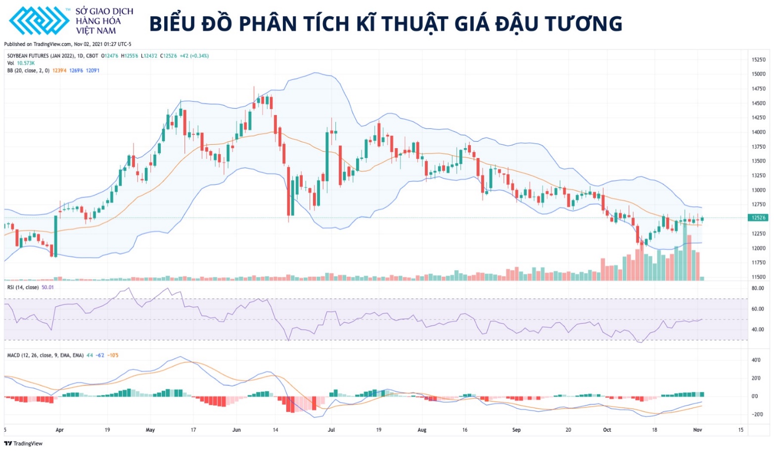 Biểu đồ phân tích kỹ thuật giá đậu tương (Nguồn: Sở giao dịch Hàng hóa Việt Nam)