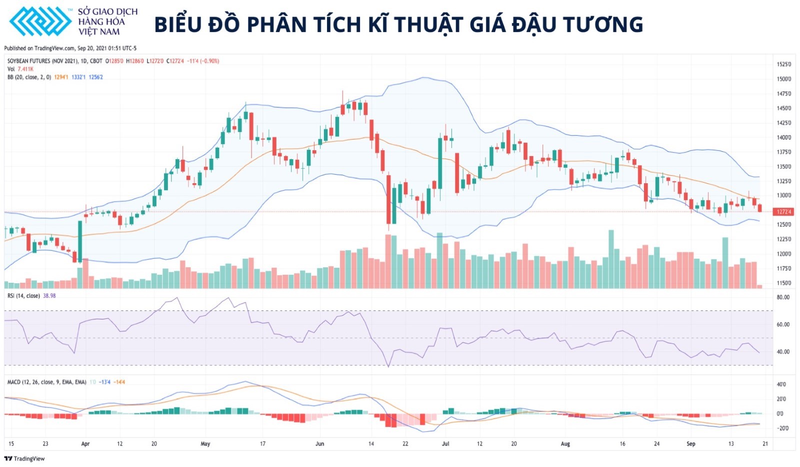 Biểu đồ phân tích kỹ thuật giá đậu tương (Nguồn: Sở Giao dịch Hàng hoá Việt Nam)