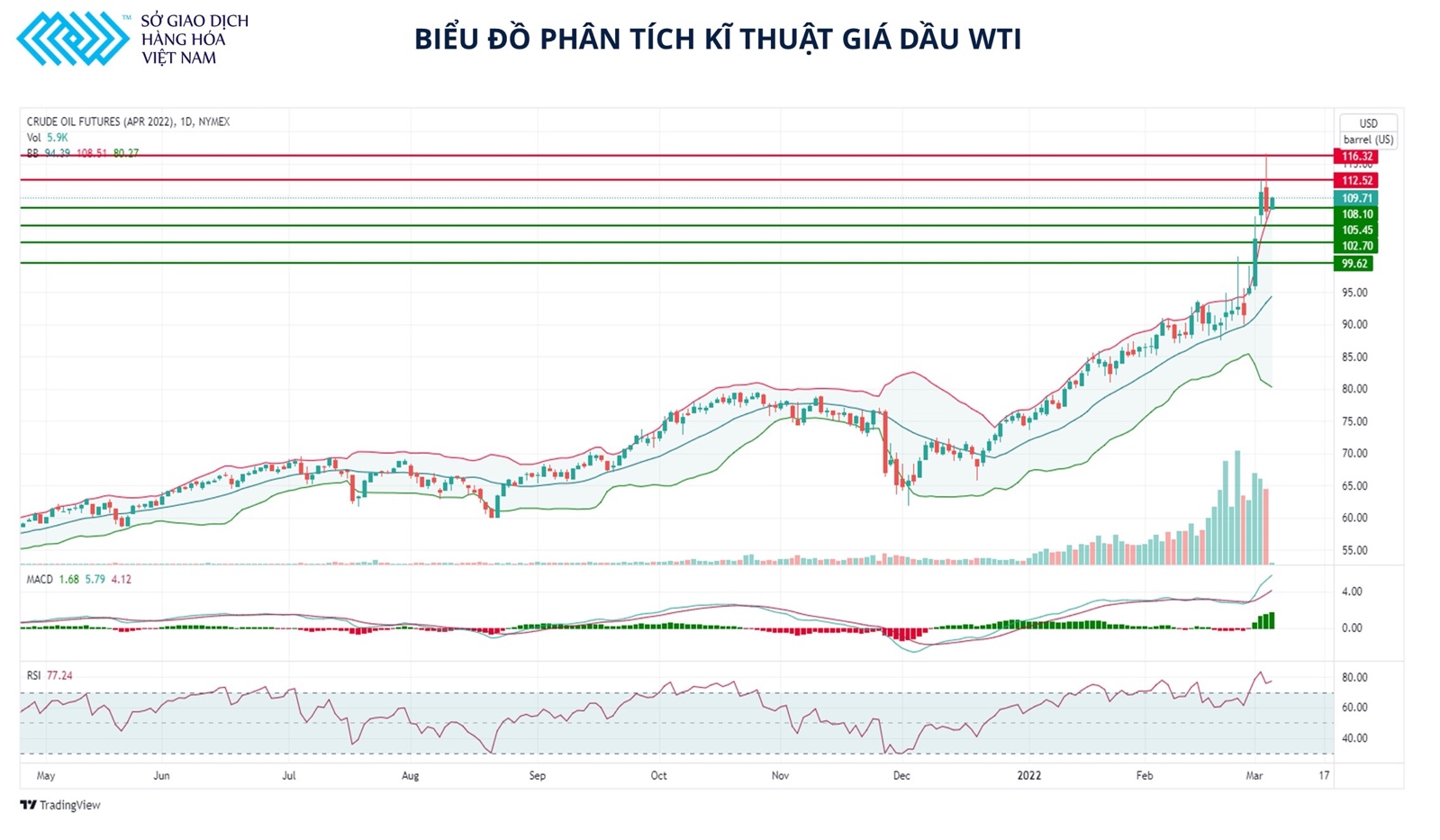 Biểu đồ phân tích kỹ thuật giá dầu WTI (Nguồn: Sở giao dịch Hàng hóa Việt Nam)
