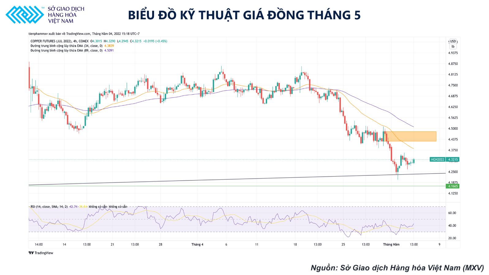 Biểu đồ kỹ thuật giá đồng tháng 5 (Nguồn: MXV)