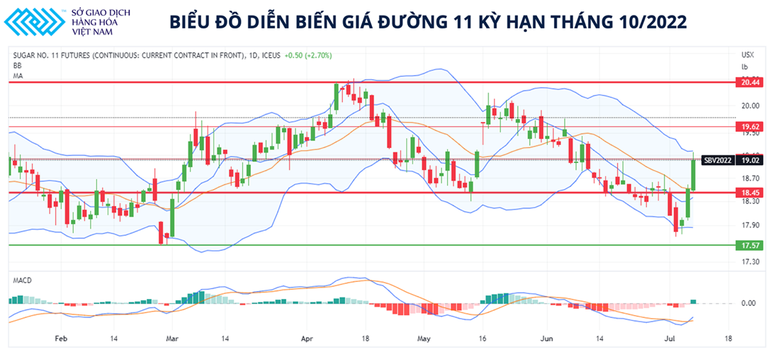 Về mặt kỹ thuật, giá đường đang nằm phía trên đường SMA10 và SMA20 thể hiện cho xu hướng tăng giá của mặt hàng này, cùng với đó, đường MACD cùng đường Signal giao nhau dưới đường 0 và có thiên hướng chếch lên thể hiện xu hướng tăng của giá. Kết hợp với thông tin cơ bản hỗ trợ giá, khả năng cao giá đường sẽ tiếp tục tăng trong phiên hôm nay.